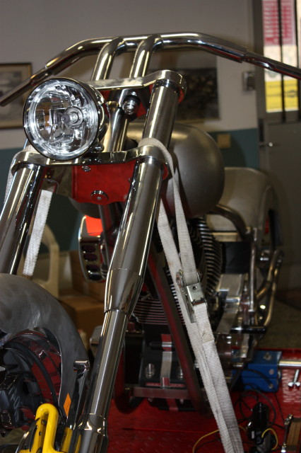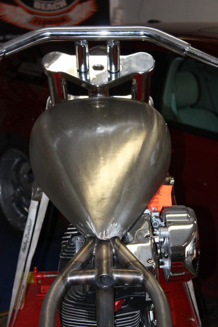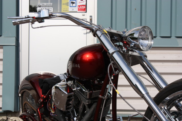 Billet lampa från Zodiac, Styret är 1-1/2" tjockt och finns i 4,6,8" rise, det kommer inte att användas i slutversionen då det antagligen blir ett custom tillverkat som passar in i stilen bättre.