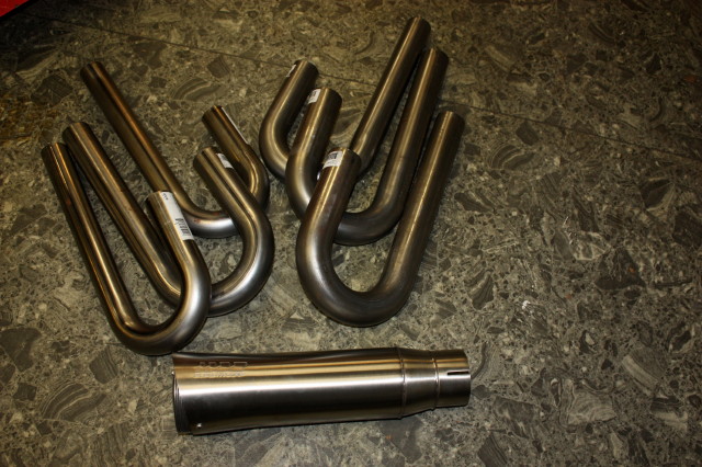Här är början till stepped 2-1 system med 5" supertrapp dämpare, efter diverse beräkningar på olika avgaspulser så har jag två olika längder att bygga efter, jag får se vilken som ser bäst ut på hojen. lite avkall på prestanda kanske man får ta för utseendets skull......eller!?