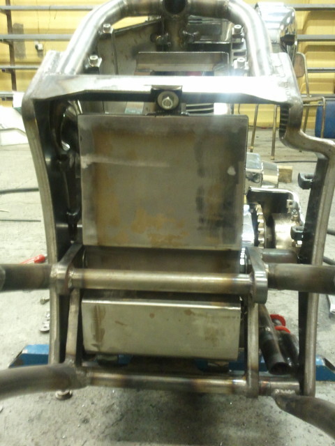 Vy på tanken framifrån.här syns batterilåda och fäste för elboxen.