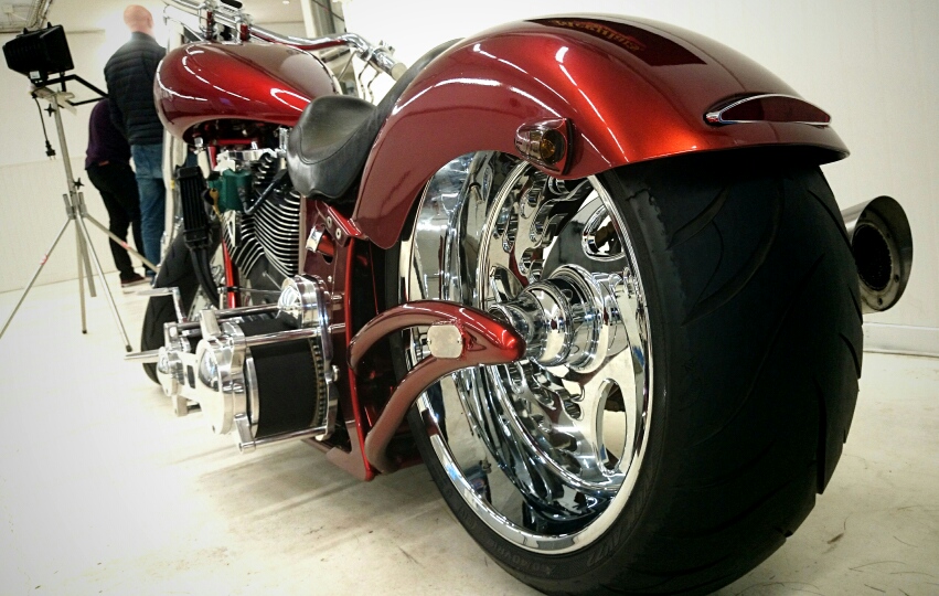 Fälgarna är Billet Inferno fälgar 18"*8.5" och 21"*3.5" skodda med Avon Cobra däck.